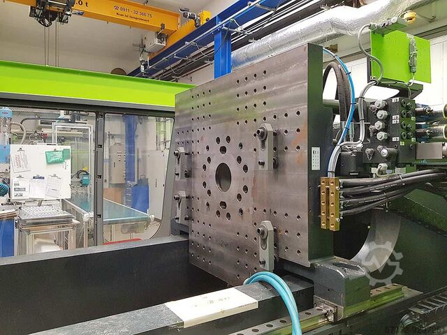 Усилие зажима: 7000кН, диаметр шнека: 40мм, скорость шнека: 300/мин, ход дозатора: 200мм, управление: Engel CC300, вес: 22т, часы работы: 3871ч, с электрическим 6-позиционным поворотным столом, электрической машиной быстрой регулировки зажимной пластины подвижной стороны, двумя инжекционными узлами, 2x 3-зонными шнеками D45мм, 32 зонами контроля горячего хода, электрическими пластифицирующими узлами и документацией.