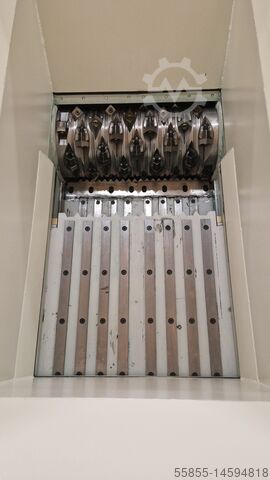 Один ряд неподвижных ножей, двухсекционный, возможность установки второго ряда неподвижных ножей (верхнего) в зависимости от перерабатываемых отходов