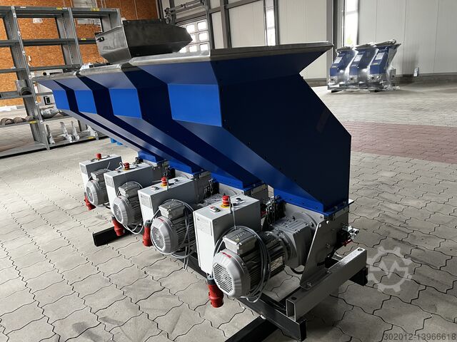 Измельчаемый материал можно подавать вручную, с помощью конвейерной ленты или робота через просторный звукоизолированный бункер для сэндвичей. В стандартной комплектации мельница монтируется на низкой опорной раме на поворотных колесах. Опорожнение мельницы осуществляется через всасывающий поддон, вставленный под сито с трубным соединением для всасывающего конвейера.