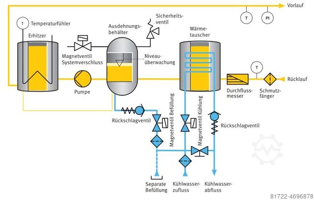 - Заполнение через охлаждающую воду может быть переключено на отдельное заполнение