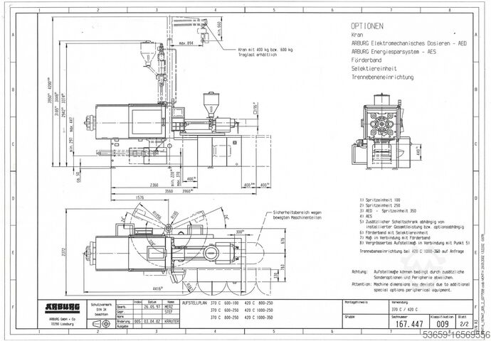 Прочее оборудование: 500-кг поворотный кран для A370 и A420, включая монтажный материал и электрическую цепную таль.