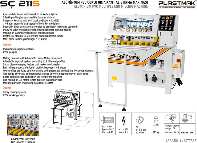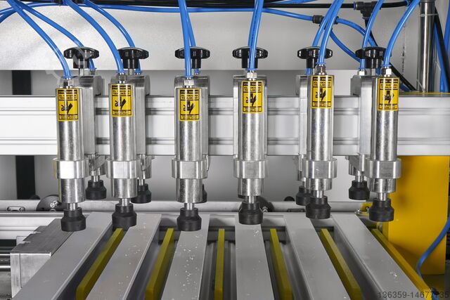- Профили фиксируются в станке с помощью пневматических вертикальных и горизонтальных зажимов