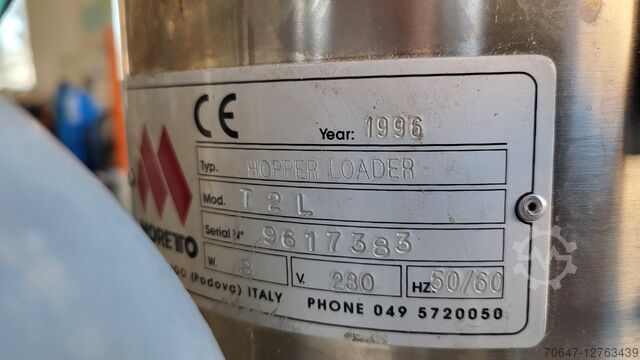 СНИЖЕНИЕ ЦЕНЫ НА РИС!!! Вместо 1.150 EUR всего 950 EUR!!! Cec R Njpgultec Ifnogw Сушилка с конвейером для материалов Moretto Тип SHD25 Мощность 2940 Вт Транспортер материалов Moretto Тип T 2L Вакуумный насос Moretto Тип VI T2