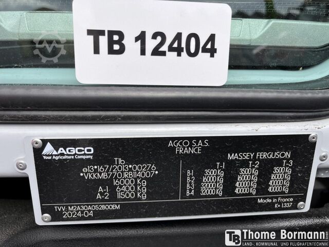 Tires (front): 600/70 R30, Tires (rear): 710/70 R42, Operating hours: 76, First registered: December 5, 2024_____Basic equipment/technical data ENGINE Max. power 224/305 kW/hp (ISO 14396) Max. torque 1280 Nm 6 cylinders, 7.4l AGCO Power - 74 LFNT-5D, CR, 4V Emissions standard (DOC+SC+SCR) without exhaust gas recirculation Stage 5 Electronic engine management with Vistronic fan control Engine speed memory Powercore engine air filter with coarse dirt extraction EasyCare cooling package Additional fuel pre-filter with water separator 500 liter fuel tank