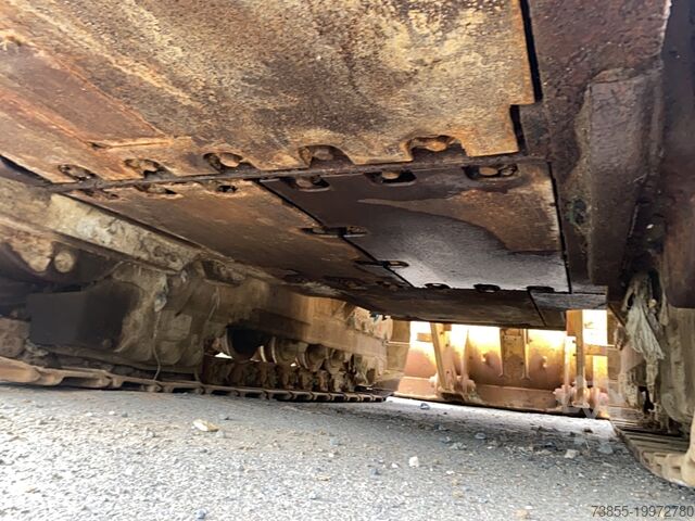 Хорошее общее состояние бульдозера. Окисление на кабине. Из выхлопной трубы и картерных газов идет густой белый дым. Масло на картере, под моторным отсеком. И белый дым из-под моторного отсека.