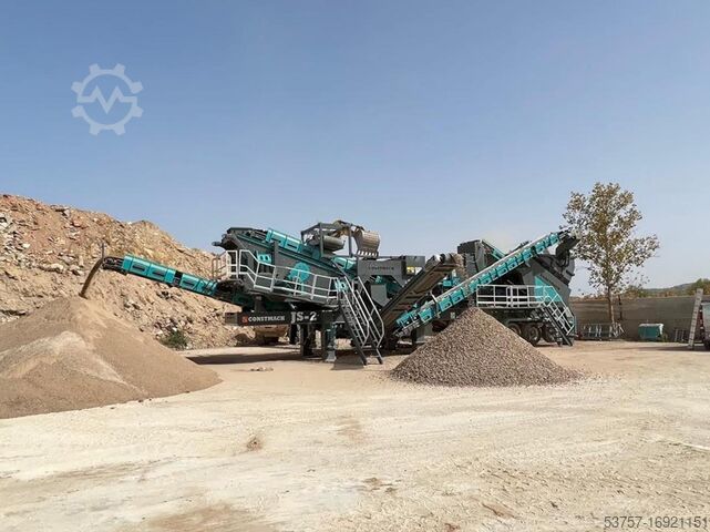 Мобильная дробильно-сортировочная установка JS-2 от CONSTMACH - идеальное решение для тех, кто ищет высокую эффективность и мобильность. Эта установка обладает производительностью 150-200 т/ч, обеспечивая максимальную производительность при мобильном дроблении камня. Размер загружаемого материала 850 x 600 мм, высота загрузки 4,5 метра, что позволяет легко перерабатывать крупные и твердые материалы. Оснащенная щековой дробилкой и вторичной роторной дробилкой, эта установка эффективно разделяет материалы разных размеров с помощью 3-дековой системы грохочения.