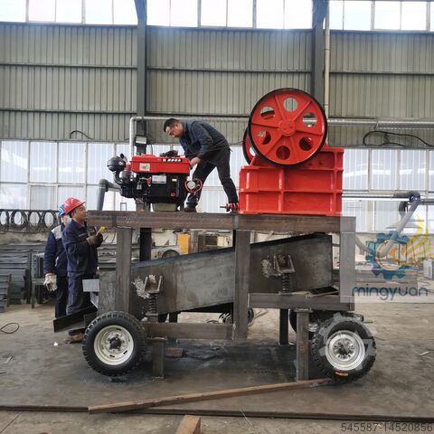 - Мобильная щековая дробилка с дизельным двигателем и грохотом часто устанавливается на мобильное шасси, что позволяет легко перемещать ее с одного места на другое. Такая мобильность особенно полезна для применения на строительных площадках или в карьерах.