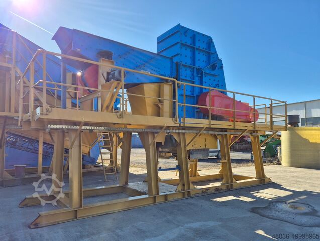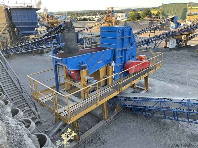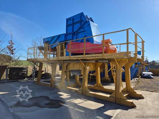 OM - Ударная дробильная установка на стальной конструкции Загрузочное отверстие: ок. 1 000 x 565 мм, электродвигатель 110 кВт Вибрационный питатель SCHENCK Бункер и желоб для выгрузки