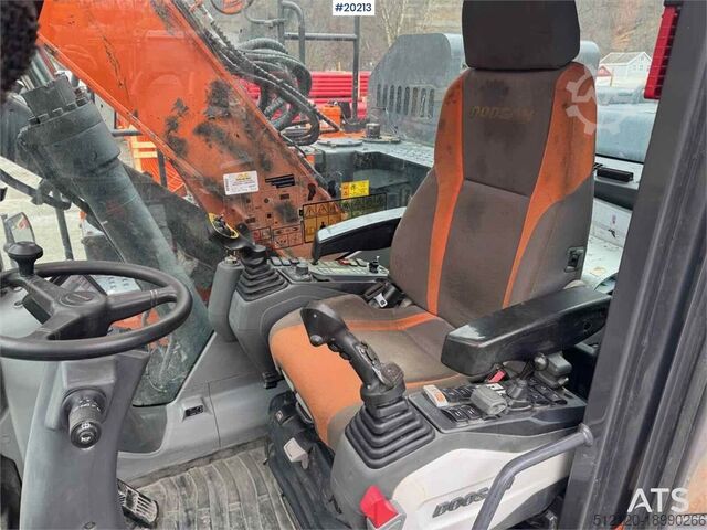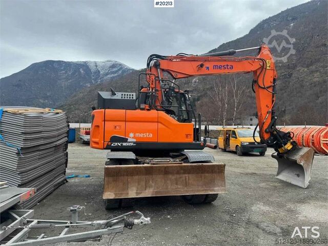 Предлагаем к продаже колесную машину Doosan DX165W-5 2018 года выпуска с тягово-сцепным устройством K80, электрогидравлической системой, артикулированной стрелой, поворотным рото-наклоном Engcon ec219 и ковшом Gjerstad для песка.