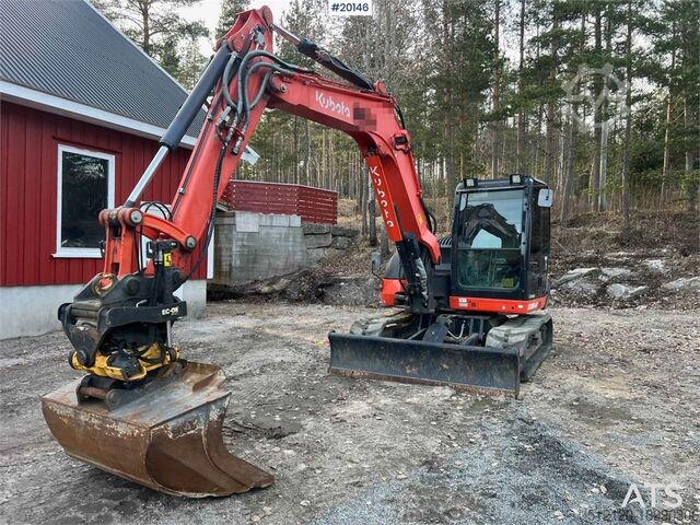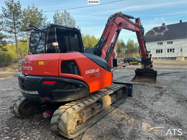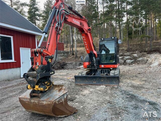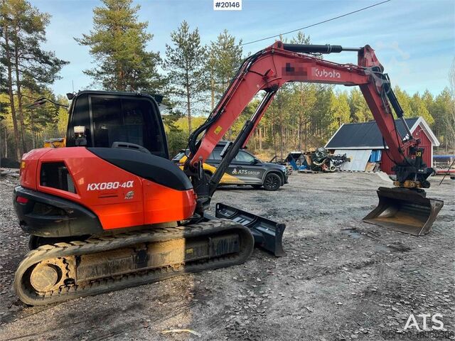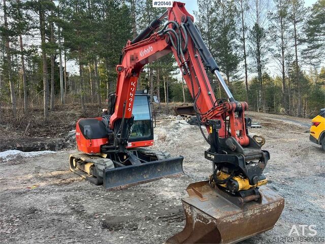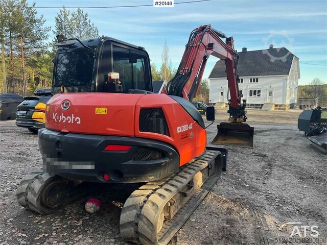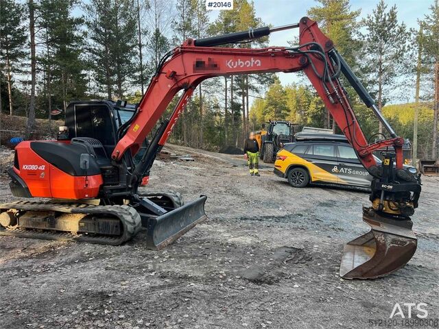 В продаже экскаватор Kubota KX080-4 2018 года выпуска с гидроножницами, рототилтом, песчаным ковшом и ковшом для чистки.
