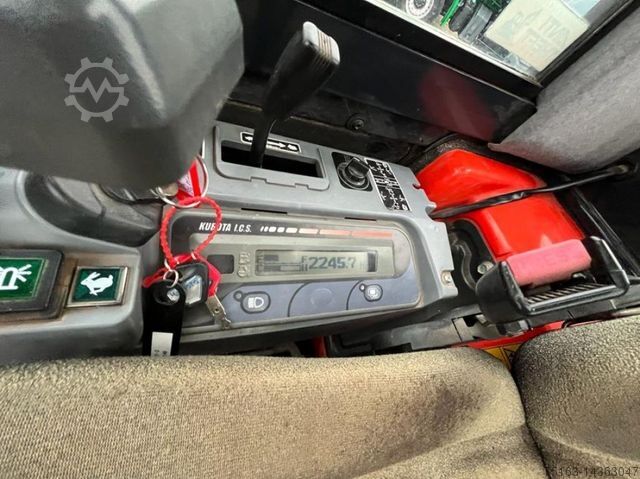 ----Construction: ROPS driver's cabin with cabin heating, Kubota 4 cylinder diesel engine type V1505-E2-BH-9EU, 1,498 cc, 18.2 KW, dozer blade 1,400 mm, chain width 300 mm. Mechanical quick-change system, 2 additional hydraulic connections, digging depth: approx. 2,870 mm, dumping height approx. 3,300 mm. Hydraulic trench cleaning bucket 1,150 mm
