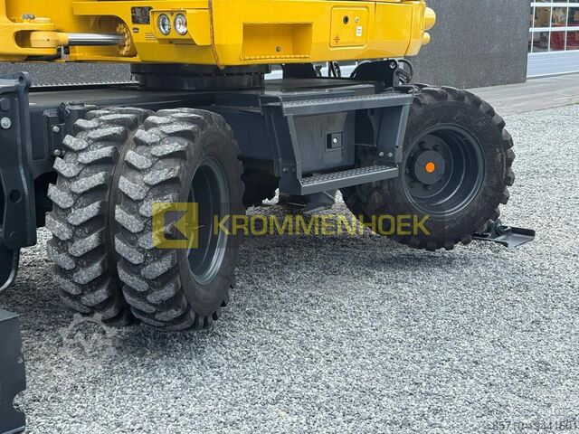 Гидравлический быстросъем, 3 ковша, регулируемая рукоять, отвал и опоры-лапы, полноприводное рулевое управление