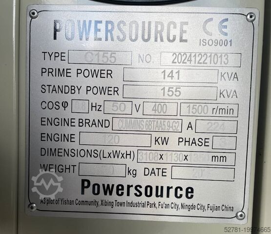 Мощность генератора: 155 кВА