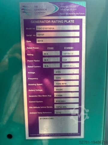 Мощность генератора: 1 675 кВА
