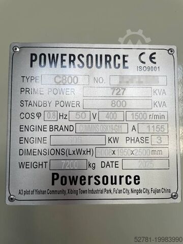Мощность генератора: 800 кВА