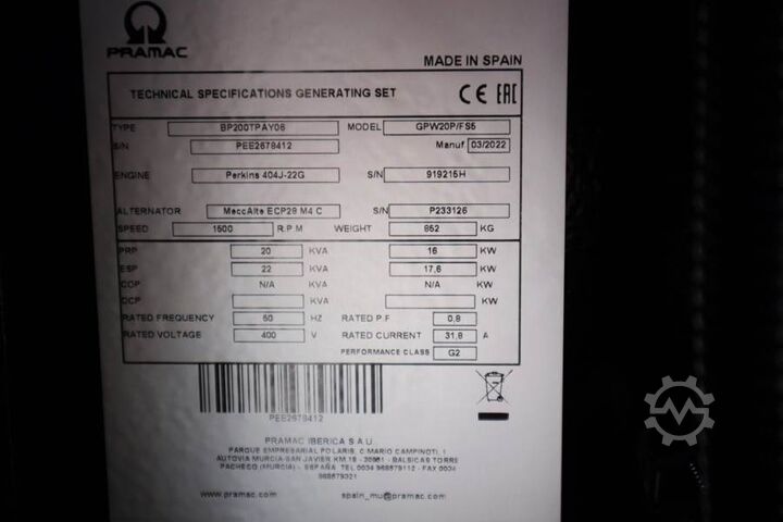 Мощность генератора: 22 кВА