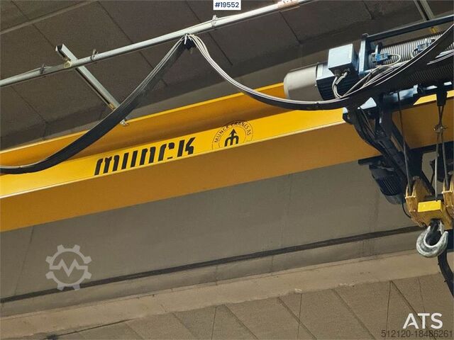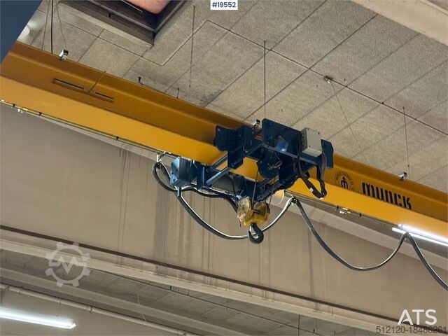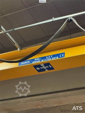 Описание: мостовой кран Munck на продажу по поручению клиента. По словам владельца, кран почти не использовался с момента покупки в 2018 году. Грузоподъемность 2,5 тонны, пролет 18 м. Немедленно доступен, управляется с пульта дистанционного управления.