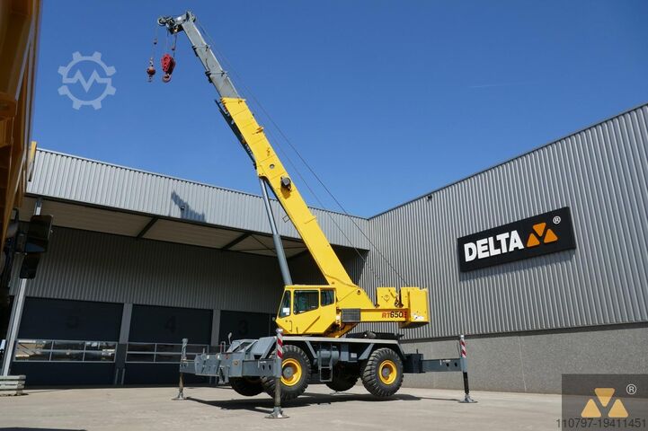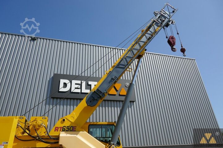 Внедорожный кран Grove RT650E, грузоподъемность 50 тонн (55 USt), 6-цилиндровый турбонаддувный двигатель Cummins 6B объёмом 5,9 л, мощность 173 л.с. (129 кВт), соответствует стандарту EPA, Tier 3, коробка передач powershift 5F-5R, конфигурация 4x4x4, кабина с кондиционером, четырехсекционная телескопическая стрела 10–32 м, решетчатый двусекционный откидной гусёк 8,8–15,5 м, максимальная высота подъема груза 49,3 м, крюковая подвеска McKissick с 3 блоками на 50Т и 8,5Т шаровая подвеска, главный и вспомогательный лебёдки, 4 гидравлические телескопические аутригеры, система PAT LMI и анти-блокировка, противовес 5 577 кг, шины 23.5-25, рабочее освещение. Кран недавно был в эксплуатации, состояние чистое. Осмотр приветствуется.