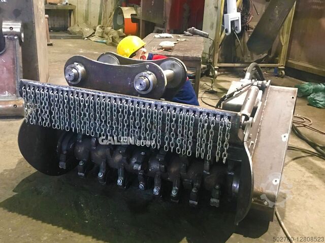 Представленный на рисунке мульчер для 20-экскаваторов мульчирует деревья диаметром до 30 см и имеет рабочую ширину 160 см.