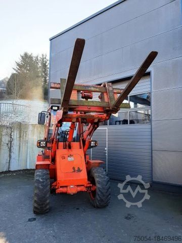Pallet forks and bulk material bucket are included.