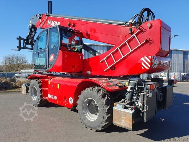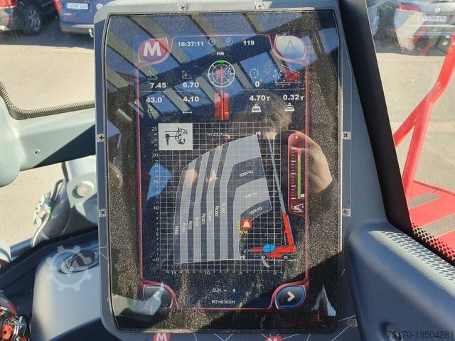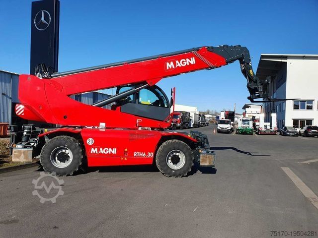 Magni RTH 6.30 telehandler, year of manufacture: 2022, operating hours: only 119!, quick coupler, pallet forks, radio remote control, work basket preparation, 3rd hydraulic circuit, air conditioning, pressurized cabin, radio/CD, touchscreen display, ROPS/FOBS cabin, engine: Volvo Penta [160 kW/204 HP], automatic leveling, variable outriggers, 20 km/h (optional 40 km/h), maximum lifting height: 29.80 m, maximum lifting capacity: 6,000 kg, ready for immediate use, very good condition,