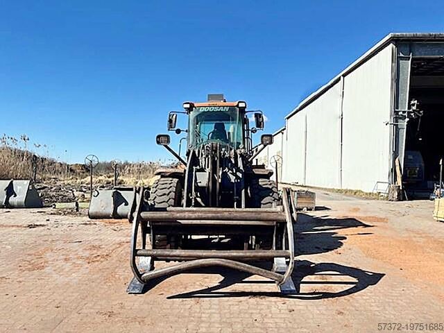 Предлагается фронтальный погрузчик Doosan, включая практически новый ковш и захват для древесины. Двигатель: Doosan DL06, цилиндров: 6, рабочий объём: 5,9 л, мощность: 128 кВт, крутящий момент: 804 Нм, экологический класс: EU Stage IV, размер шин: 20.5 R25. Объем ковша: 3,6 м³, скорость движения: 38 км/ч, грузоподъёмность на отрыв: около 9800 кг, макс. тяговое усилие: 12500 кг. Габариты машины (Д/Ш/В): примерно 7500/2650/3300 мм, вес: около 14000 кг, наработка: около 5500 ч. Документация имеется. Возможен осмотр на месте.