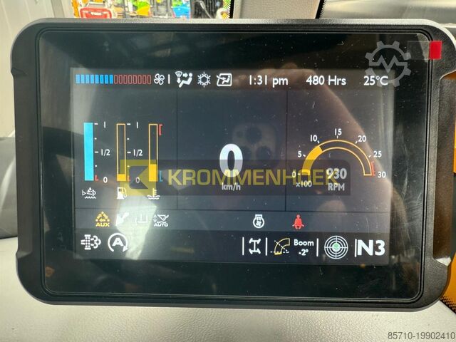 Промышленная версия Plus с двигателем 81 кВт, 4-ступенчатой коробкой передач Powershift, гидравлическим быстросъемом, кондиционером и системой выравнивания.