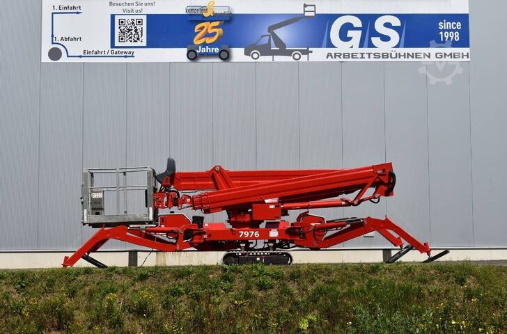 Особенности: привод, белая резиновая гусеница, поворотная корзина 180°.