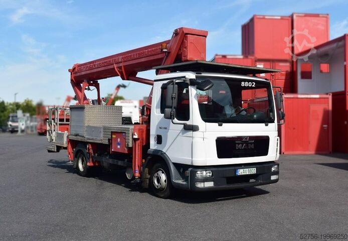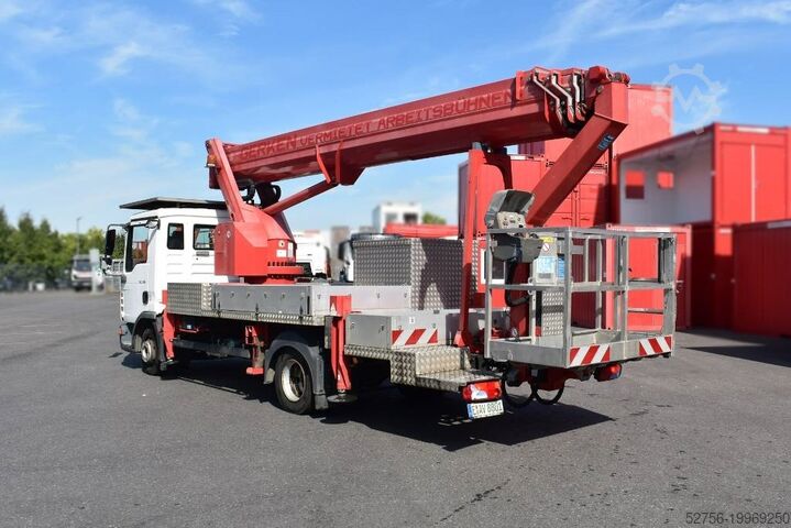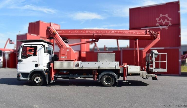 Особенности: поворотная рабочая корзина, стрела корзины, угол поворота, БЕЗ защиты крыши, преимущество: электропитание в корзине, грузовая платформа с откидными бортами, фургонная надстройка, большая боковая досягаемость, автоматическая установка и складывание, наибольшая вылет на шасси 7,5 т