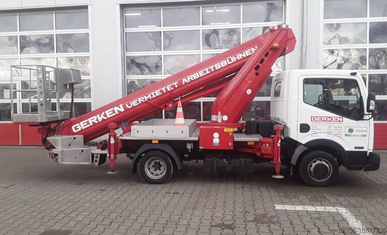 Особенности: Поворотная рабочая корзина (2 x 85°), розетка в рабочей корзине, выключатель двигателя в корзине, возможное заземление, автоматическая установка и складывание, функция памяти, откидной задний борт.