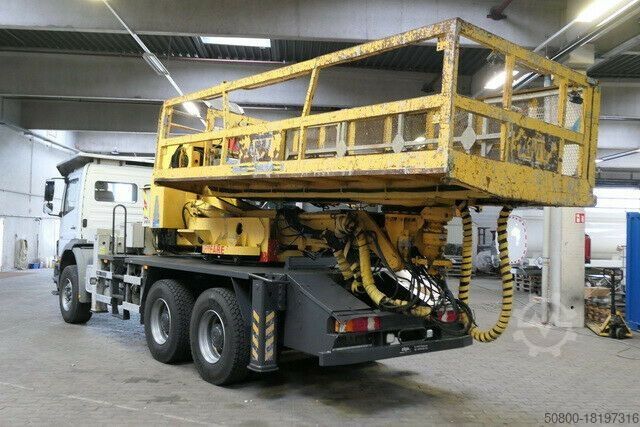 Двигатель Евро 3, подъемная рабочая платформа AMV (Andersens Mek. Verksted AS), тип: ARBPL 10,5 M, 2005 г. постройки, грузоподъемность ок. 1000 кг, дистанционное радиоуправление, высота стрелы ок. 10,5 м, стрела. длина ок. 17,0 м, поворот стрелы: 90 градусов, размер платформы ок. 5000x2000 мм - (Ш) 3300 мм с гидр. боковая стенка разложена, наклон платформы: 0 - 90 градусов, поворот платформы: 180 градусов, генератор 5 кВт - 220В/50Гц, компрессор "KAESERr" M76, мощность 7,6 куб.м. 7,0 бар, двигатель DEUTZ BFL 1011, гидр. Опоры переднего и заднего моста, ABS, блокировки дифференциалов, коробка отбора мощности, моторный тормоз, круиз-контроль, 16-ступенчатая раздвоенная коробка передач, аналоговый тахограф, стандартное сиденье водителя с подвеской, электропривод. Стеклоподъемники водительской и пассажирской дверей, электропривод наружных зеркал. регулируемый, люк в крыше, автоматические дневные ходовые огни, проблесковый маячок, рессорная подвеска, бак около 300 литров, на автомобиле может быть наклеена и/или маркирована реклама.