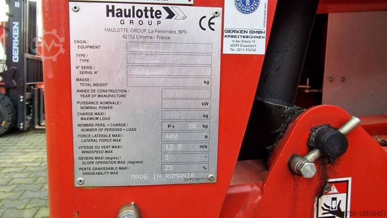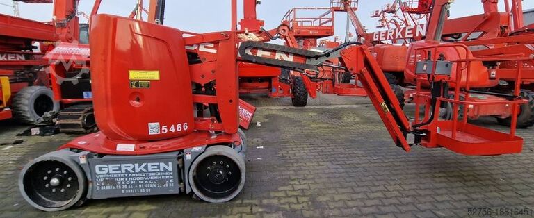 Особенности: вращающаяся рабочая корзина, колено/вертикальный угол поворота +/-63°/-69°, белые шины.