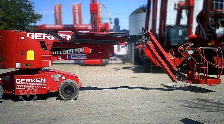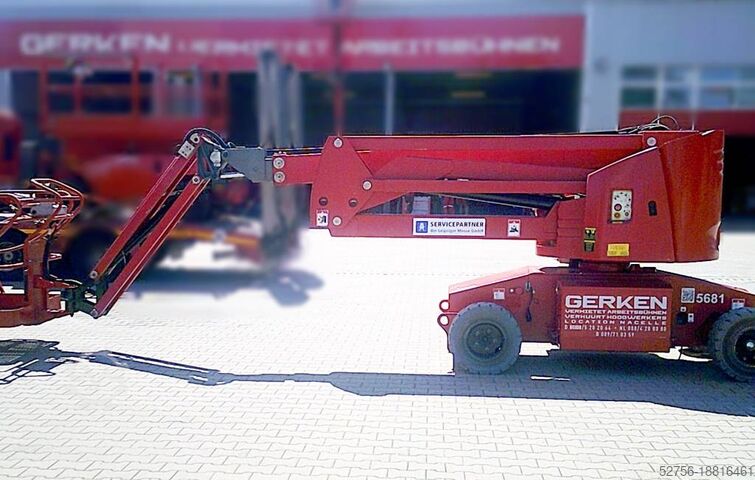 Особенности: Поворотная рабочая корзина, угол поворота стрелы корзины +/- 70°, белые шины, преимущество: большое боковое выдвижение