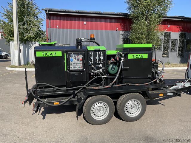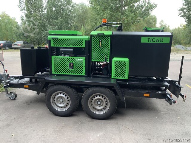Усовершенствованная битумная машина BCM-120 работает на дизельном двигателе с гидравлическим приводом насоса и нагревает эмульсию от дизельной горелки. Распылитель битумной эмульсии оснащен отдельным баком. Еще один установлен для заполнения мастикой. Материалы смешиваются вручную. У герметика трещин есть автоматическое управление нагревом мастики и система продувки.
