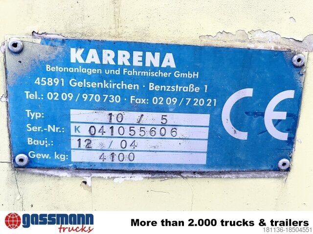 Wheelbase: 4300 mm Structure: Concrete mixer Karrena approx. 10m³ gearbox ZF 16 S 182 OD, M-driver's cab, air conditioning, auxiliary drive on flywheel side. ACCESSORIES INFORMATION WITHOUT GUARANTEE, subject to changes, prior sale and errors!
