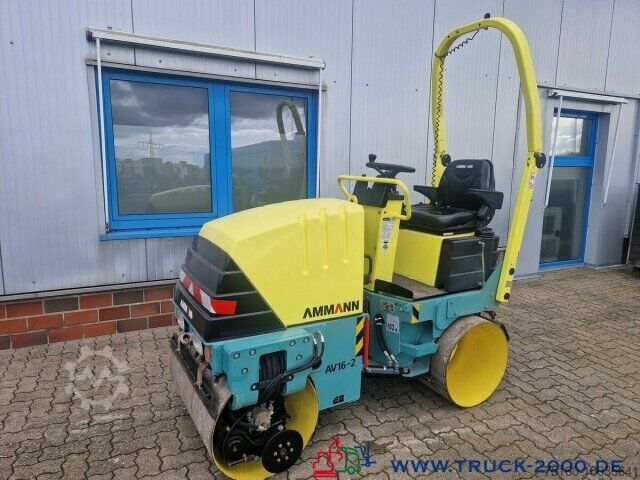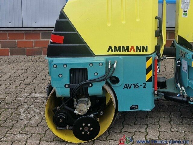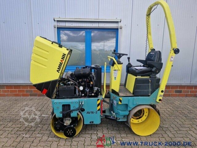 German machine, condition see photos, more than Euro 10.000 invested, tandem vibratory roller, Ammann type AV 16-2, edge cutter, sprinkling front/rear and on the edge cutter, interval and continuous sprinkling, can be operated via the drive lever, ideal for asphalt and soil compaction, high lateral clearance for working over edges, Working width 880 mm, vibration force 14 KN-18 KN, Yannmar diesel engine, easily accessible thanks to large engine hood, 13 KW = 18 HP, low-maintenance engine, lighting, foldable roll-over protection, comfort seat with lap belt, rotating beacon prepared, clearly arranged controls, operating weight 1.580 kg, transport length 2,145 mm, transport height 2,250 mm