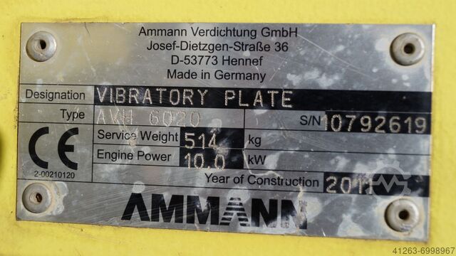 Виброплита №2 Ammann AVH 6020, год выпуска 2011, E-Start, вес 514 кг, сер.номер 10792619