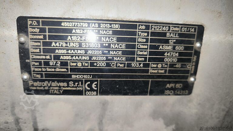 Клапан Petrol Valves A182-F51, тип BALL, 12", class ASME 600, body A182-F51 NACE. Новый.