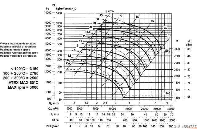 Qv= расход от 1 до 10 м3/с или от 1 до 35.000 м3/ч