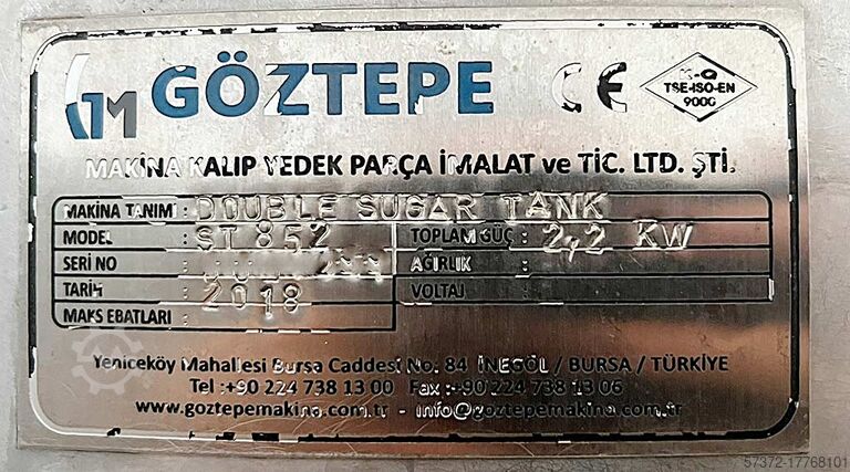 Для пищевой промышленности предлагаются в общей сложности четыре резервуара из нержавеющей стали. 1/2) Два бака для масла Göztepe, объем: 2x1000 л, высота впуска: 2500 мм, высота выпуска: 800 мм, размеры машины X/Y/Z: около 4000 мм/1900 мм/3000 мм. 3/4) Два бака для сахара Göztepe, объем: 2x1000 л, высота входа: 2500 мм, высота выхода: 860 мм, размеры машины X/Y/Z: около 4000 мм/2000 мм/2700 мм. Мешалки включены. Документация в наличии. Возможен осмотр на месте.