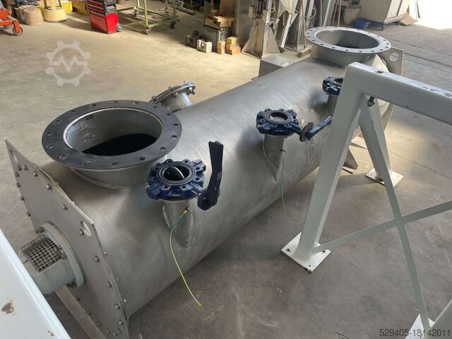 Старый смеситель непрерывного действия Lodige KM 1200 D с плужными лемехами (1977 г.в.), переделанный предыдущим пользователем в смеситель-сушилку (2017 г.в.).