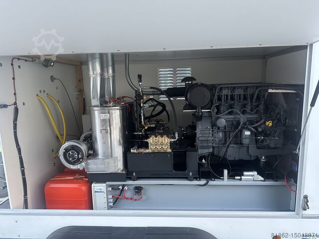 В качестве дополнения мы в стандартной комплектации установили трехходовой кран, который позволяет производить распыление под давлением 350 бар и расходом 40 литров в минуту (также с горячей водой температурой до 100 градусов максимум). поэтому его можно использовать, например, для прочистки канализации или чистки конюшен.