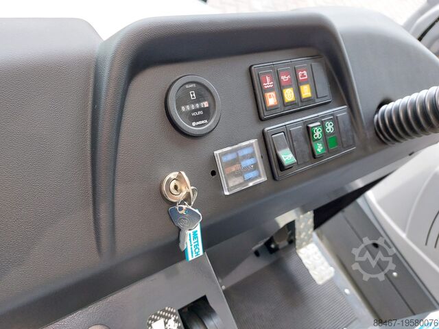Высокое и удобное водительское сиденье обеспечивает отличную обзорность вокруг машины, что уменьшает вероятность пропуска загрязнений и снижает риск несчастных случаев. VR1450D+ отличается простой эксплуатацией, мощным всасыванием и безпылевым результатом. Благодаря рабочему времени 3,5 часа (для аккумуляторной версии) и вместительному мусорному баку объёмом 230 литров вы можете очистить за один проход средний склад, прилегающую территорию или ангар. Бак опорожняется при помощи гидравлической системы подъёма на высоту до 134 см, что минимизирует физическую нагрузку на оператора. Meijer VR1450D+ доступен в версиях на дизеле, аккумуляторе и сжиженном газе (LPG) и стандартно комплектуется одной боковой щеткой.