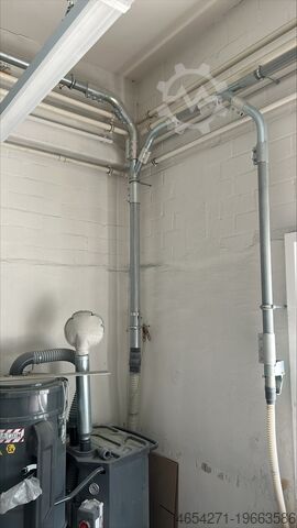 Промышленный пылесос продается с системой трубопроводов (см. приложенные фото), 2 всасывающими штуцерами, 2 балансировщиками и всасывающим шлангом для ручных машин.