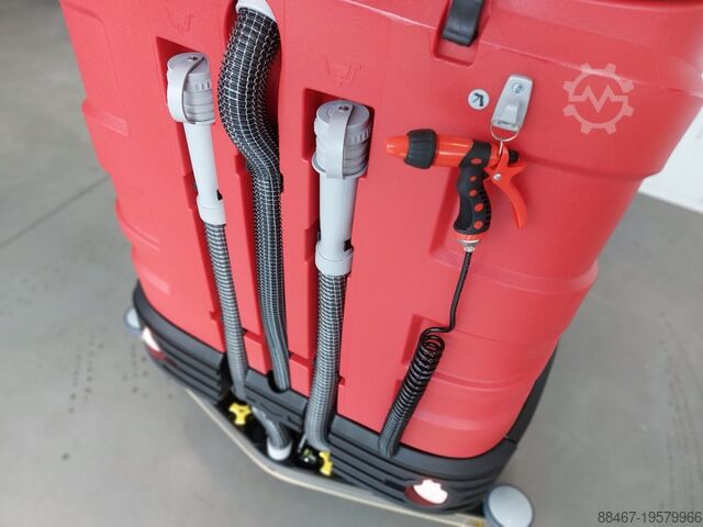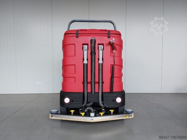 Машина характеризуется низким уровнем шума и может достигать рабочей ширины до 100 см. Большое сиденье водителя обеспечивает максимальный комфорт. Оснащена ручным водяным пистолетом для очистки бака с грязной водой и рассчитана на рабочее время около 4 часов.