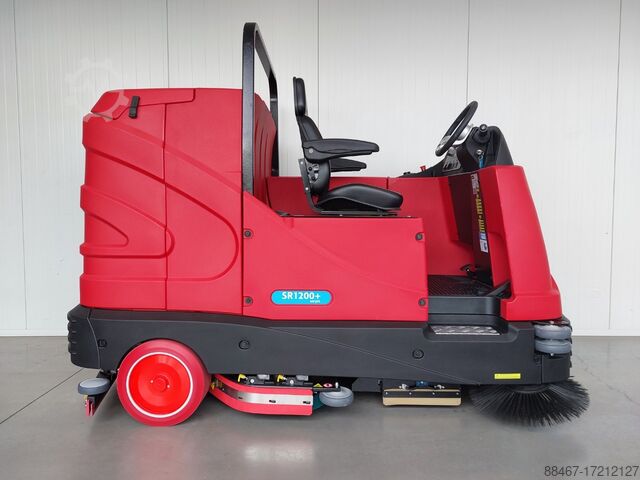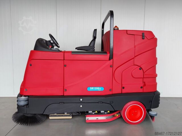 Удобная в эксплуатации машина оснащена большими баками для чистой и грязной воды, а также продуманной системой безопасности. SR1200+ оборудована подметающим модулем, который собирает крупный мусор, после чего поломоечная система удаляет оставшуюся грязь. Ширина рабочей зоны поломоечного модуля составляет 123 см, а ширина подметающей системы — 143 см. Вместительные баки и аккумуляторная батарея 36 В позволяют очищать большие площади за один проход.