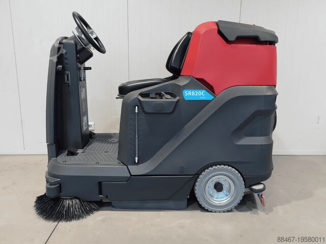 Несмотря на внушительный вес — 1 224 кг, SR820C отличается хорошей маневренностью благодаря заднему приводу и продуманной конструкции. Максимальная скорость составляет 9 км/ч, что способствует эффективной работе, а низкий уровень шума (всего 69 дБ(A)) позволяет использовать машину даже в шумочувствительных помещениях. Для максимальной безопасности предусмотрено светодиодное освещение и продуманная организация обзора вокруг водителя.