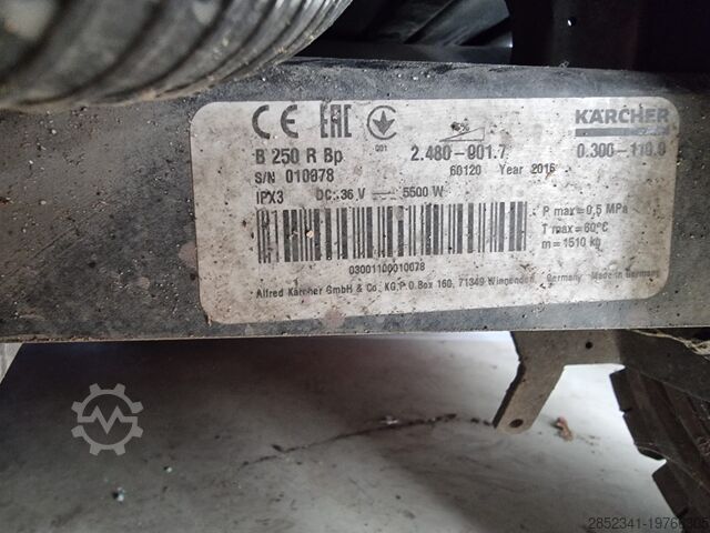 Хорошо сохранившаяся KÄRCHER B250 с роликовой щеточной головой R100, двумя боковыми щетками и освещением. Машина поставляется с аккумулятором и зарядным устройством.