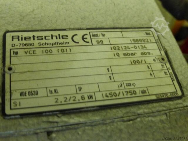 - 2 вакуумных компрессора Rietschle, тип VCE 100